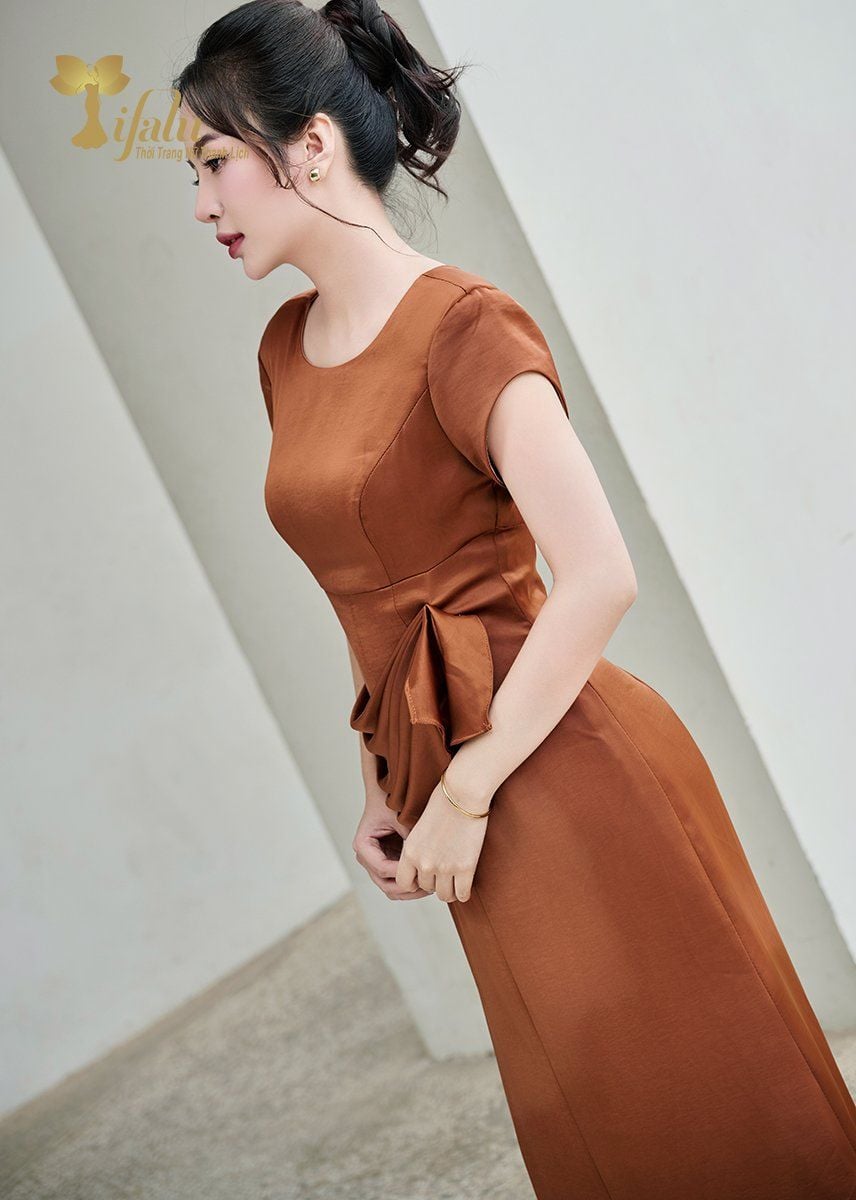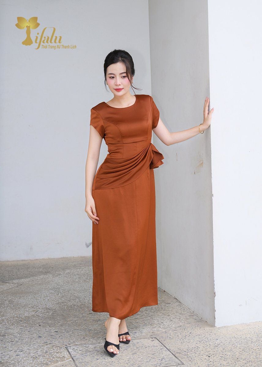 Đầm dự tiệc dáng dài maxi lụa mang đến vẻ đẹp thanh lịch và quyến rũ với thiết kế xếp ly phần eo tạo điểm nhấn đồng thời che đi phần khuyết điểm vòng 2 giúp các nàng tự tin toả sáng trong các buổi tiệc.
