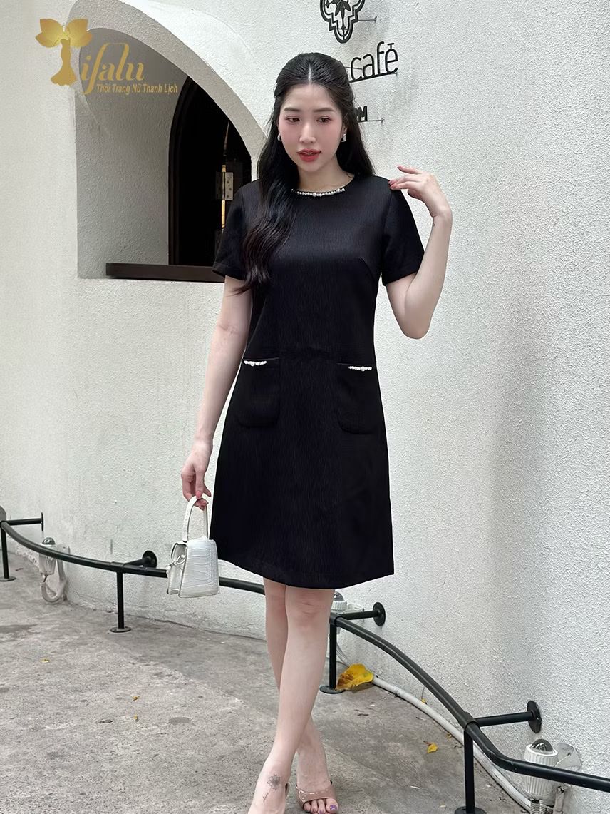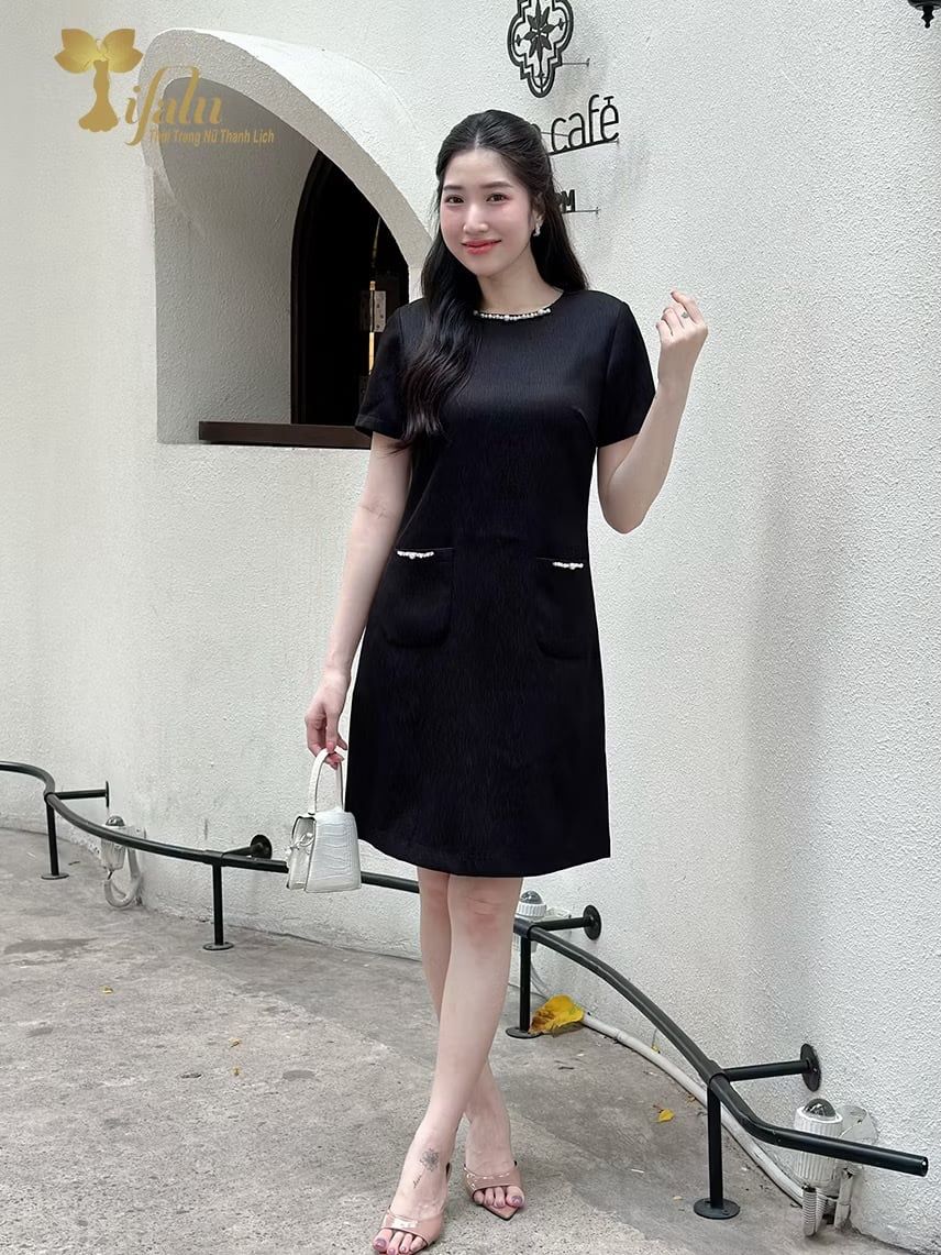 Thiết kế dáng suông thoải mái, che khuyết điểm tốt, phù hợp nhiều dáng người. Điểm nhấn nổi bật là chi tiết