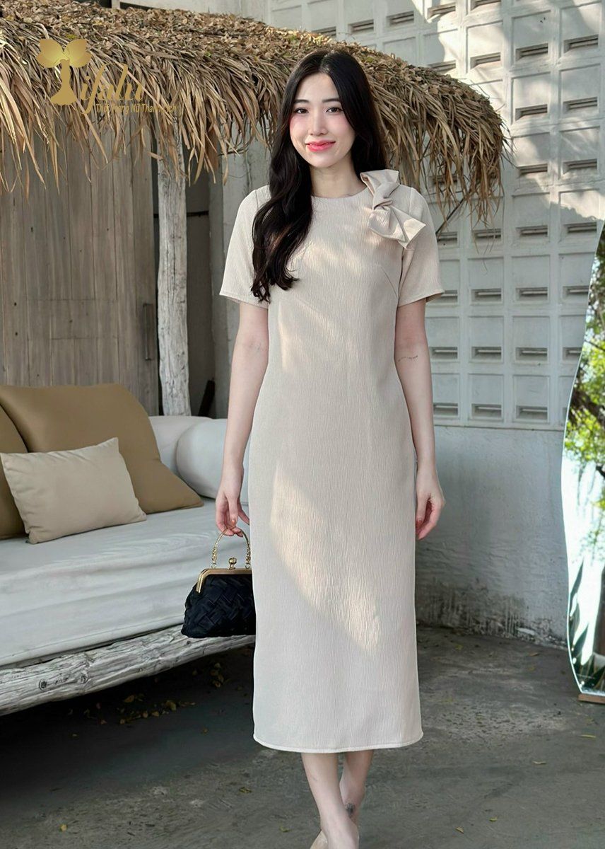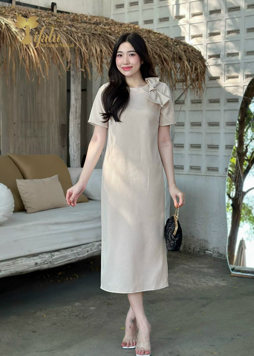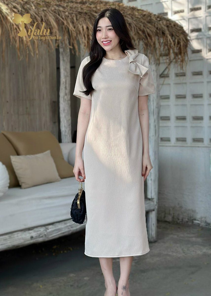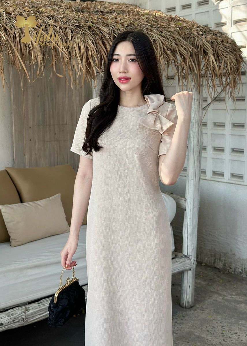 Thiết kế dáng suông tinh tế giúp che khuyết điểm cơ thể, tôn lên sự duyên dáng tự nhiên. Điểm nhấn nơ vai mềm mại tạo nét nữ tính, cuốn hút, giúp bạn nổi bật trong mọi ánh nhìn. Với chất liệu cao cấp, đường may tỉ mỉ, chiếc đầm không chỉ thoải mái khi mặc mà còn thích hợp cho các dịp dự tiệc, lễ cưới, sự kiện quan trọng. Đây là lựa chọn lý tưởng cho những quý cô yêu thích phong cách nhẹ nhàng nhưng đầy khí chất.